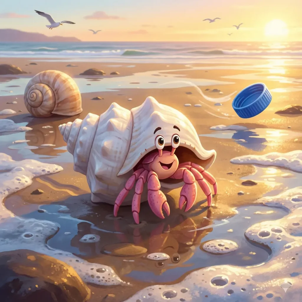 Arthur, o pequeno caranguejo-eremita, avistou algo brilhando perto de uma poça de maré.