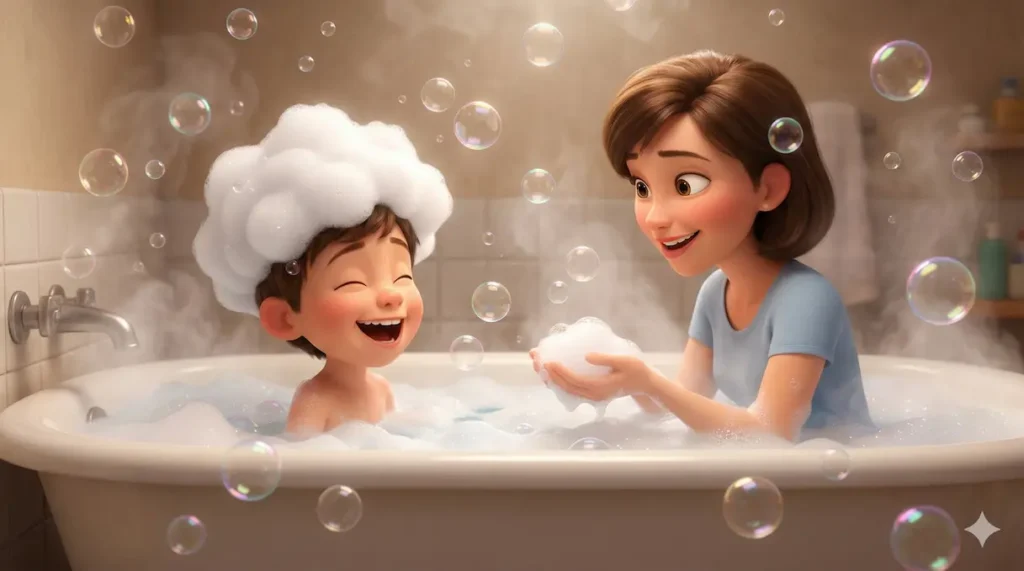 A água da banheira está morna. Sai uma fumacinha branca. Benício entra na água. Tchibum. Que gostoso! A mamãe coloca […]
