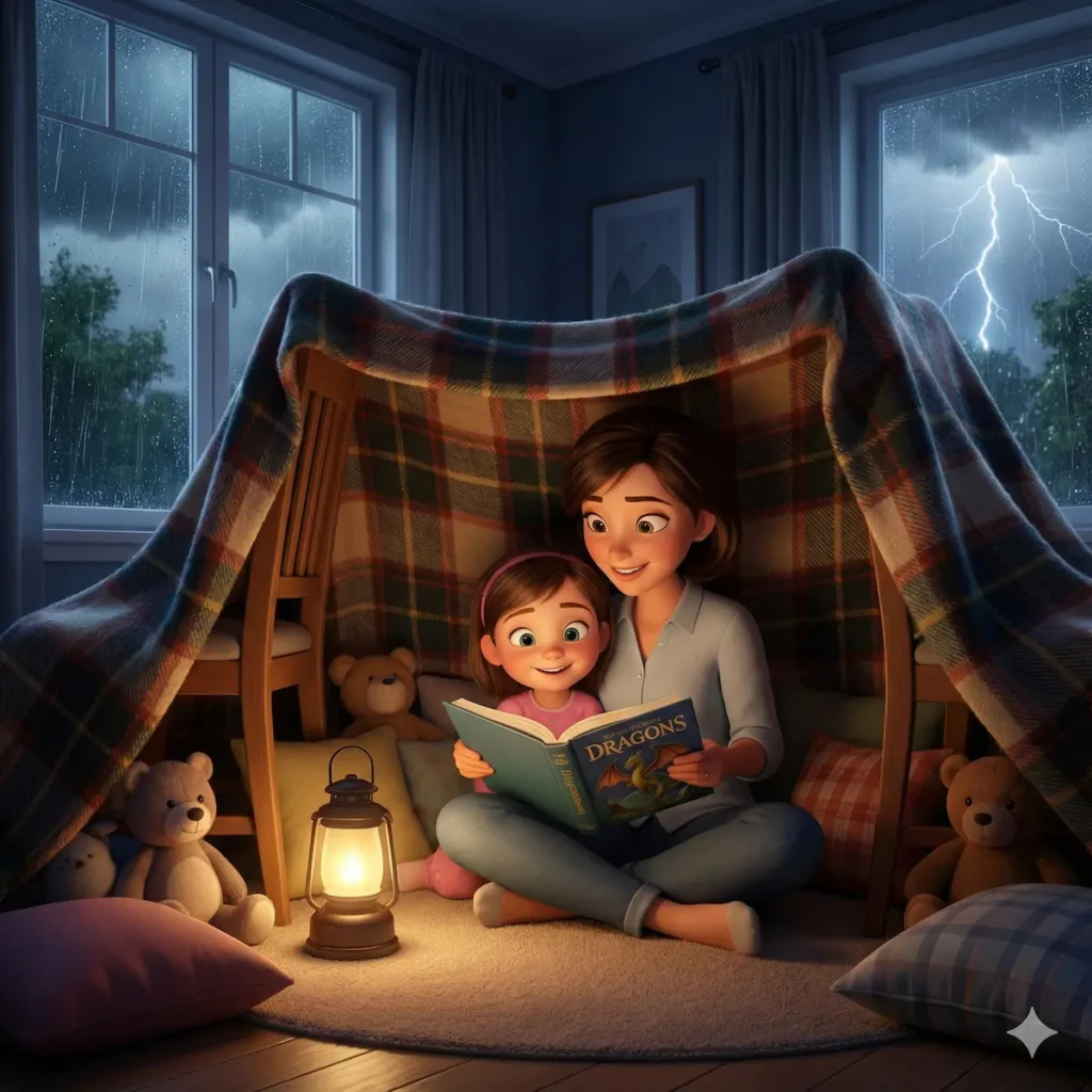 A chuva batia forte na janela do quarto: Plic, ploc, plic, ploc. O trovão fazia a vidraça tremer. Lara estava