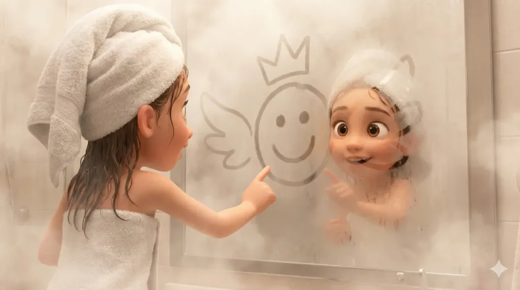 O vapor quente do chuveiro transformou o banheiro em uma nuvem branca e cheirosa. Lavínia saiu do banho enrolada na