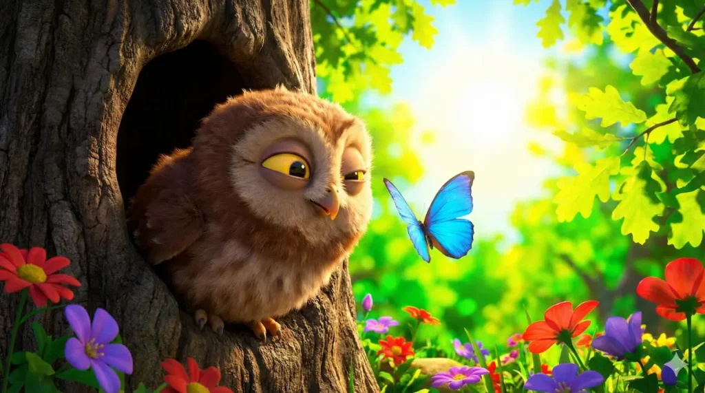 A luz machucou. Foi a primeira coisa que a Pequena Coruja sentiu. Ela dormia no buraco escuro do carvalho velho,