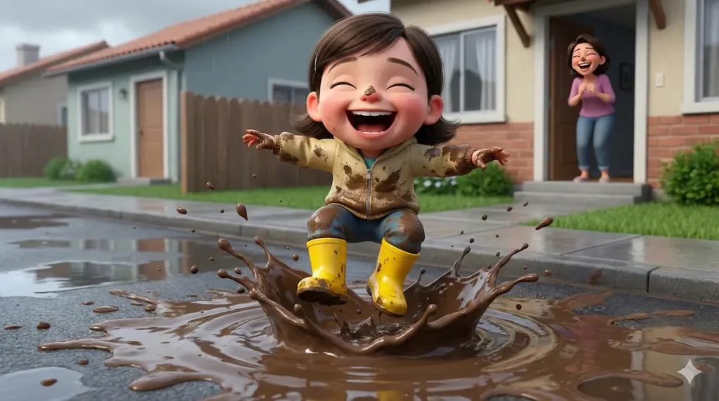 As botas de borracha amarela de Maria Cecília brilhavam de tão novas. Lá fora, a chuva tinha parado, mas o