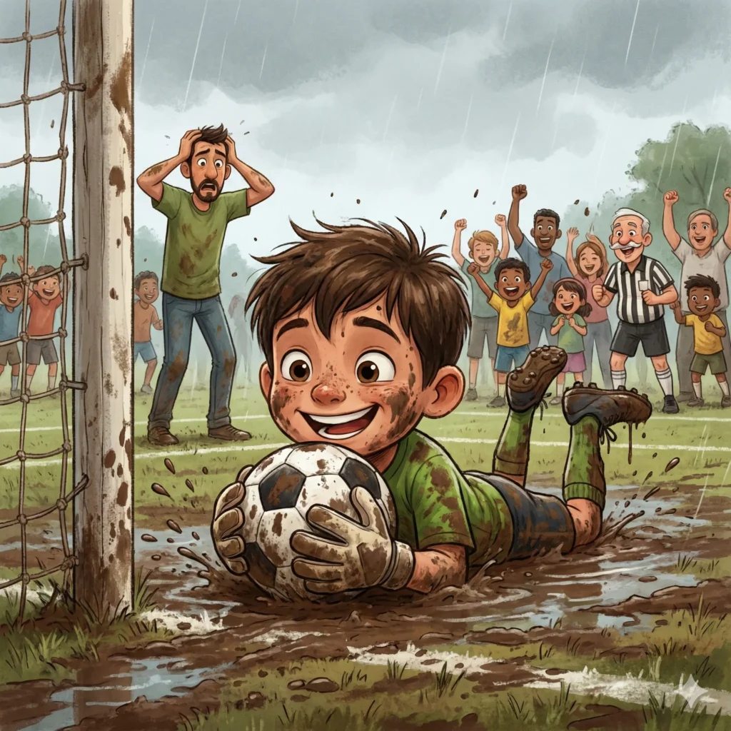 A grama do campo estava molhada e cheirava a terra pisada. Vitor ajeitou as luvas de goleiro. Elas eram grandes