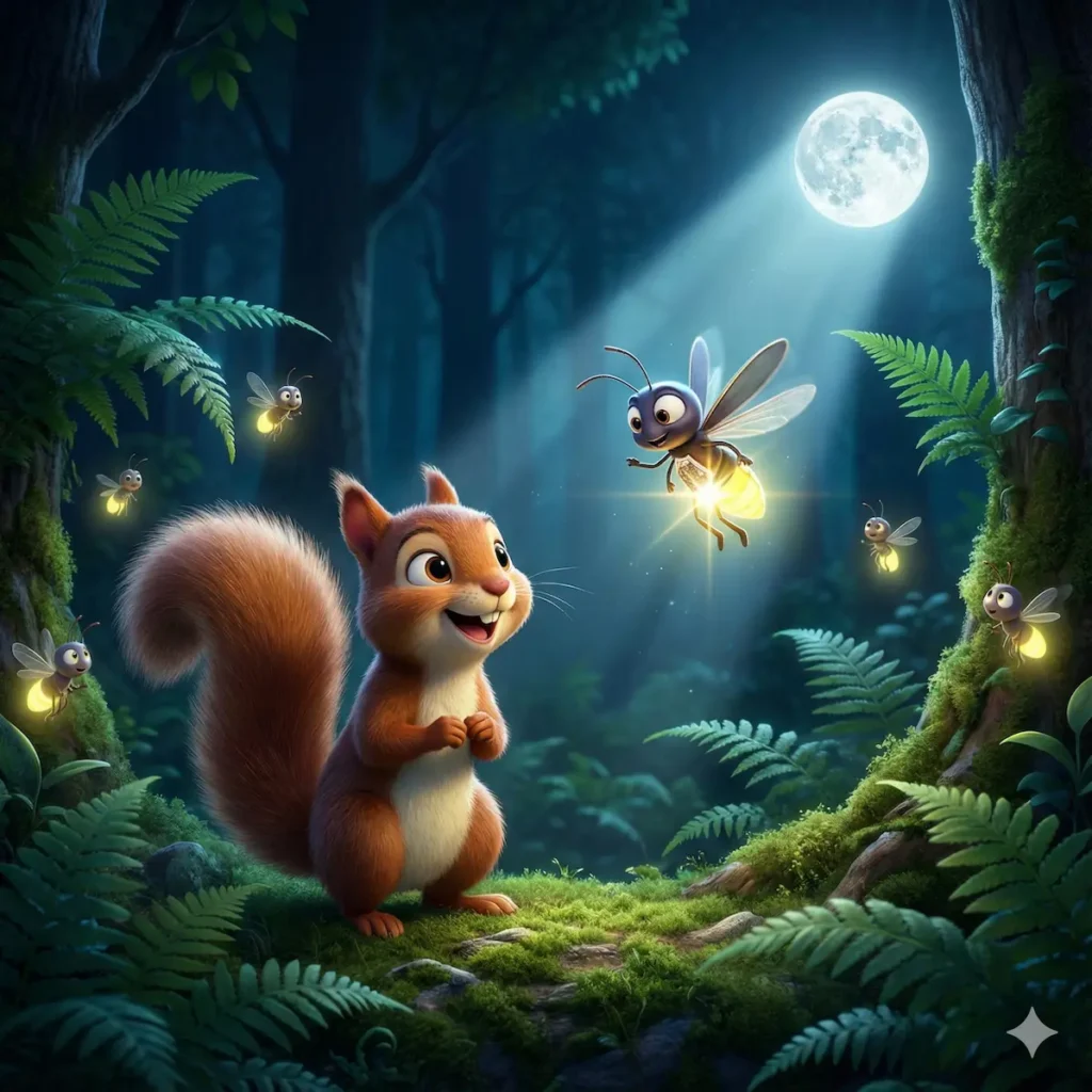 A floresta estava escura. Anthony, um pequeno esquilo curioso, pulava de galho em galho. Ele parou ao ouvir um soluço.